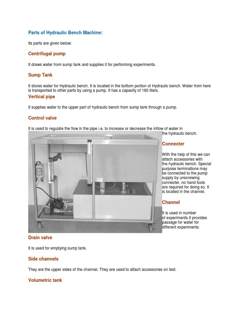 Hydraulic Bench Apparatus Pdf Experiment 01 Demonstration Of Main Parts Of Hydraulics Bench Apparatus Objectives To Familiarize With Main Parts Of A Course Hero